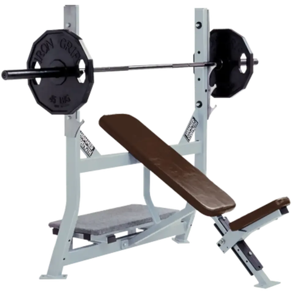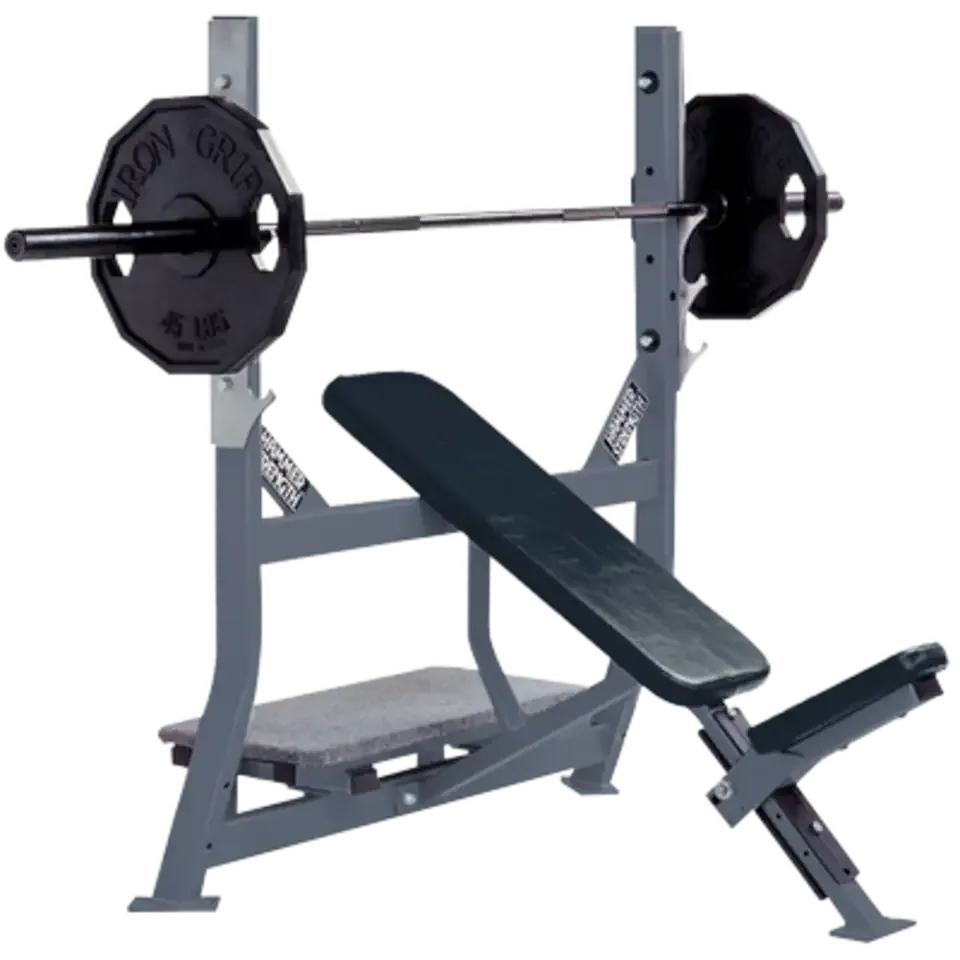 Az olimpiai pozitív fekvenyomó pad lehetővé teszi a döntött fekvenyomást, miközben a Hammer Strength padok és állványok magas szintű tartósságát és minőségét nyújtja.