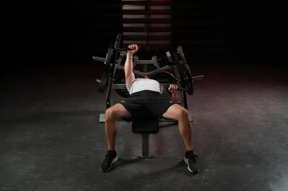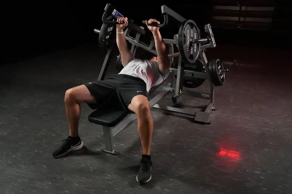 A Hammer Strength Izo-laterális vízszintes fekvenyomó gép természetes, dinamikus nyomó mozgást biztosít, ami új szintre emeli a hagyományos fekvenyomást. A gépet úgy alakították ki, hogy a sportoló ugyanúgy helyezkedjen el, mint egy klasszikus fekvenyomó padon, miközben a 5°-ban döntött ülőrész támogatja az optimális testhelyzetet és az erőátvitelt.