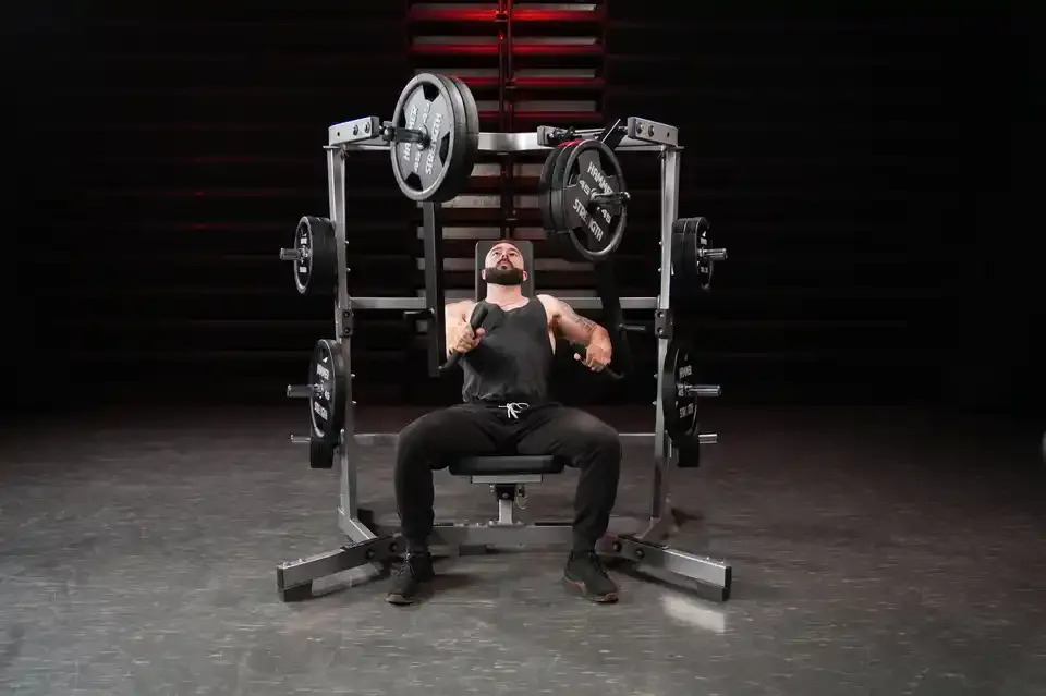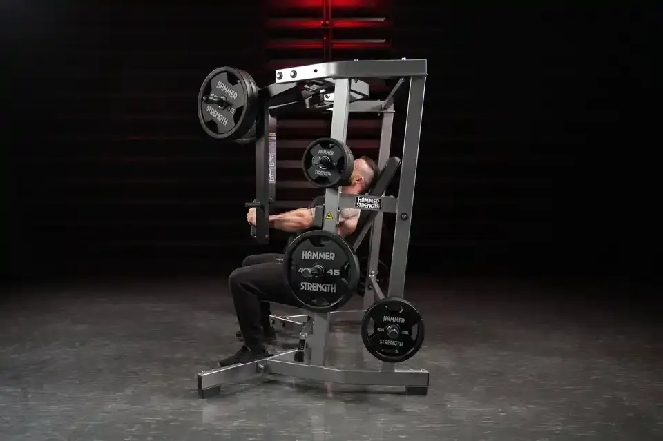 A Hammer Strength Izo-laterális széles mellprés gépet úgy tervezték, hogy ülő helyzetben, kontrollált mozdulatokkal fejlessze a lefelé irányuló nyomás erejét. A gép széles kiinduló pozíciója lehetővé teszi a mellizmok mély nyújtását és erőteljes összehúzódását, miközben a karok természetes nyomópályán mozognak egymás felé – maximalizálva az izomaktivációt.