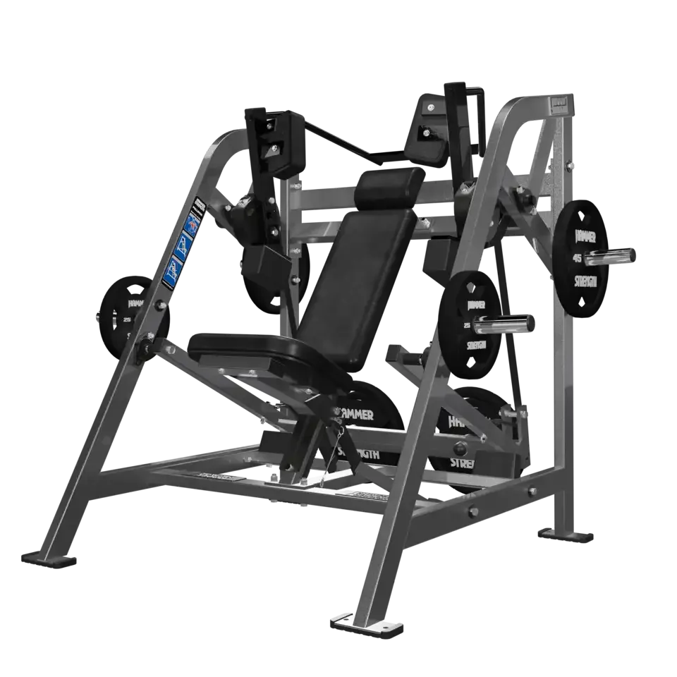 A Hammer Strength tárcsasúlyos hát- és mellizom erősítő pullover gép precíz és kontrollált lefelé húzó mozdulatok végrehajtására lett tervezve. Csökkentett vállnyújtási tartománya minimalizálja a terhelést, így hatékony és biztonságos edzést biztosít a vállak védelme mellett. A 30 fokos ülésdőlésszög optimális testtámaszt nyújt a fókuszált, dinamikus mozgásokhoz, míg a szíjhajtásos rendszer egyenletes, megbízható teljesítményt garantál, minimális karbantartási igénnyel.