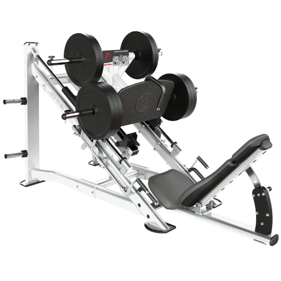 A Life Fitness Súlylapos Lineáris Lábnyomó Gép három különböző háttámasz-beállítással rendelkezik, és a kormányrúd közvetlenül a lábtáblája felett helyezkedik el, így a gép könnyen megközelíthető és elhagyható.