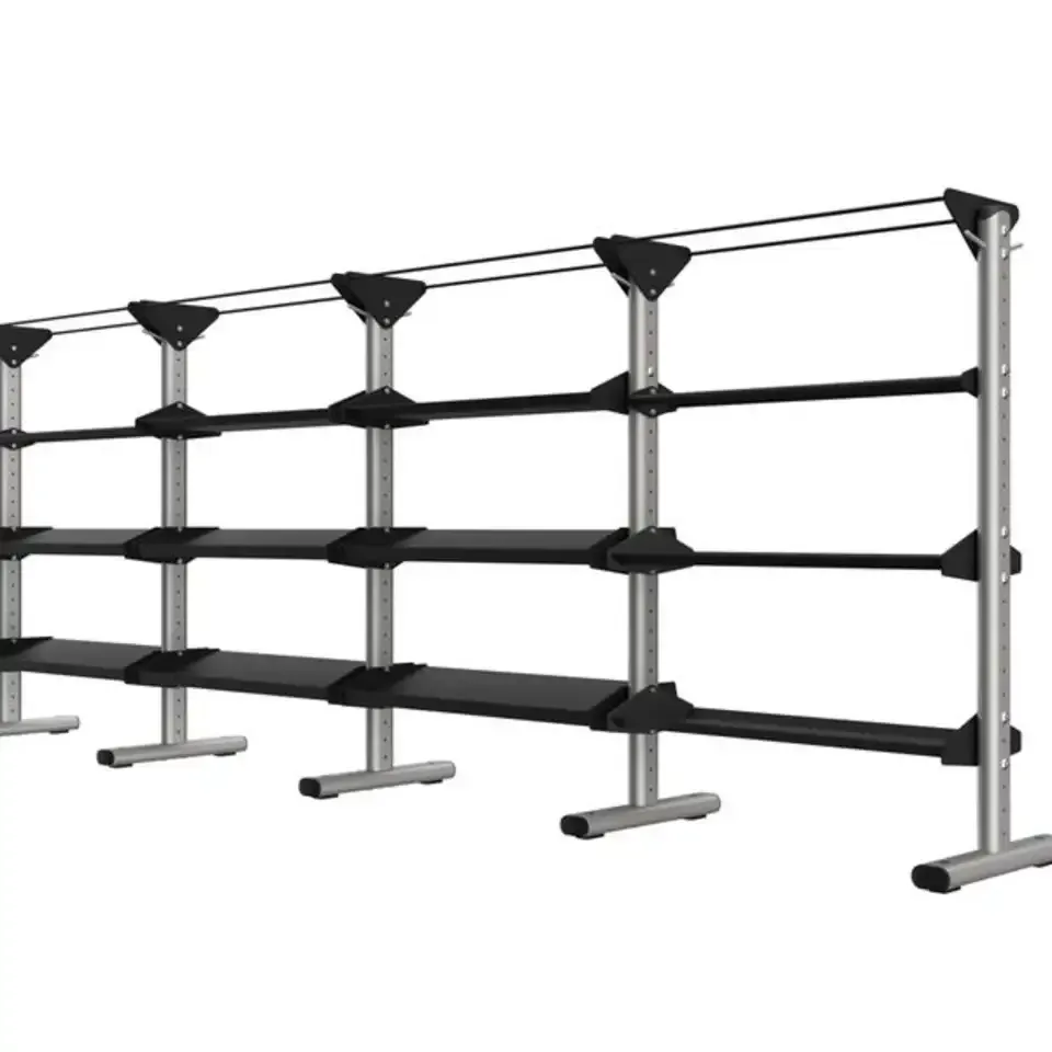 A falhoz illeszkedő kialakítás helytakarékos, így nem foglal sok értékes területet. A rendszer könnyen testre szabható a rendelkezésre álló térhez, és különféle polc- és oldaltároló opciókkal konfigurálható, hogy minden edzésigényt kielégítsen.