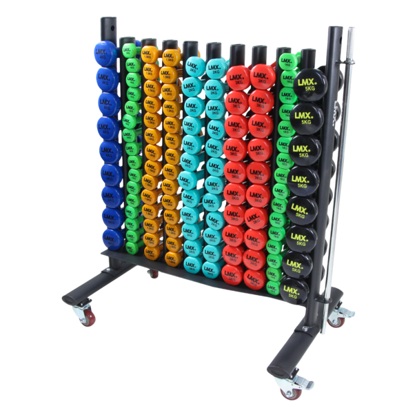 Keresi a megfelelő állványt LMX.® Vinyl kézisúlyzó készleteihez? Az LMX1151 LMX.® Vinyl kézisúlyzó állvány az ideális megoldás. Robusztus, matt fekete váza letisztult és modern megjelenést kölcsönöz, miközben a kiváló minőségű, forgatható görgők kiváló mozgathatóságot biztosítanak. Ennek köszönhetően az állvány könnyedén átgurítható az edzőtér bármely pontjára.