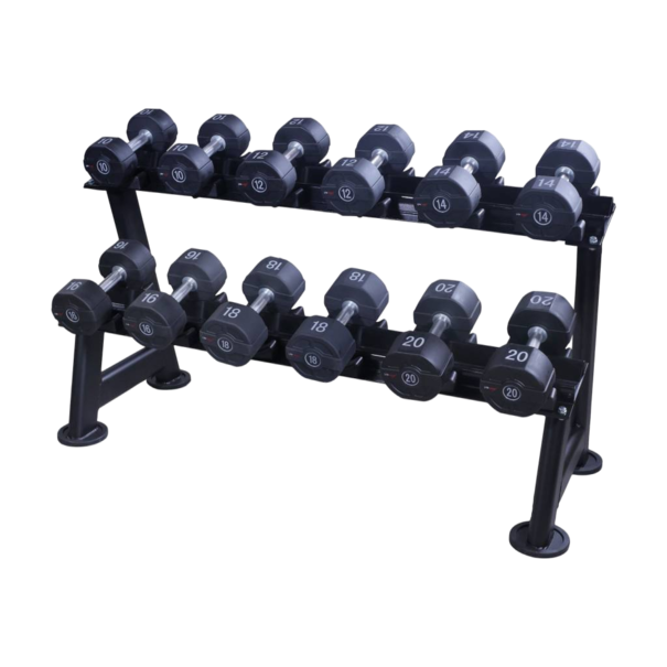 Kompakt kialakításuknak és az ergonómikus, finom recézéssel ellátott (30–32 mm átmérőjű) markolatuknak köszönhetően ezek a súlyzók kiváló kényelmet és kontrollt biztosítanak az edzés során. A fogantyú hossza 140 mm, ami masszív és stabil érzetet ad. A súlyérték minden súlyzó tetején, alján és elején egyértelműen fel van tüntetve a gyors és könnyű választás érdekében.