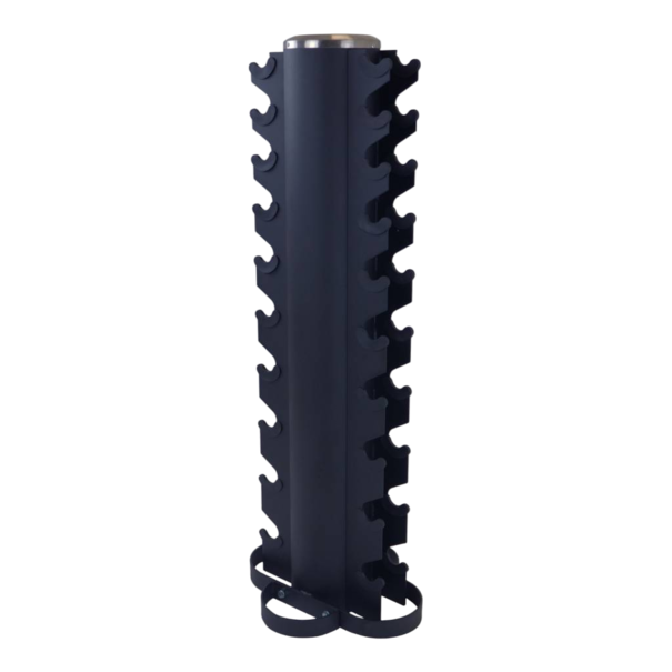 Professzionális súlyzótorony: Erős, matt fekete porszórt acélváz – méretei: 55 x 45 x 145 cm.