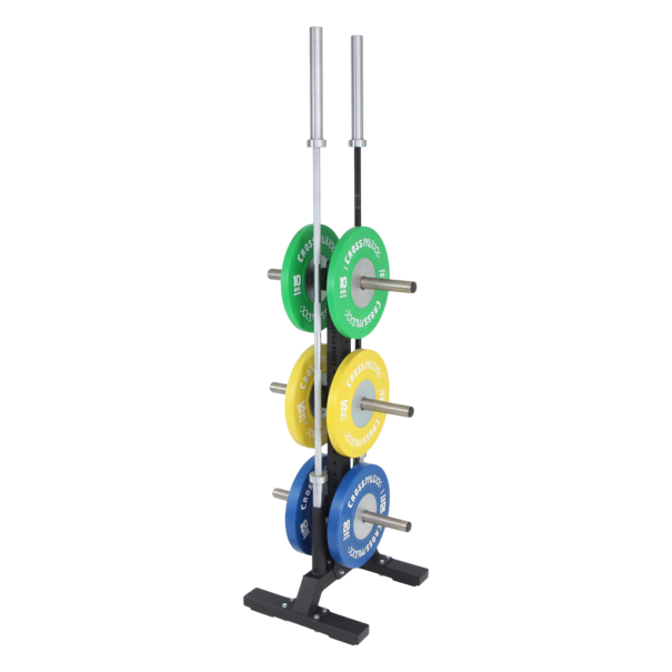 Az LMX1032 Crossmaxx® bumper plate stacker egy rendkívül hatékony, helytakarékos megoldás a Crossmaxx® tárcsák rendszerezett tárolására.