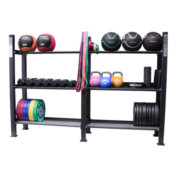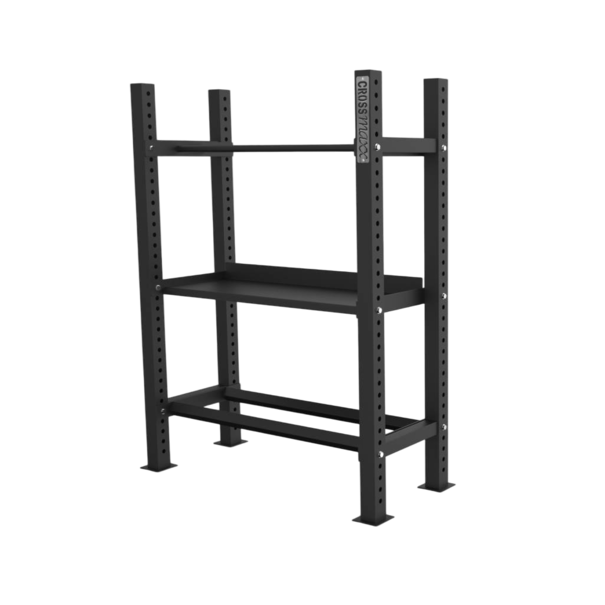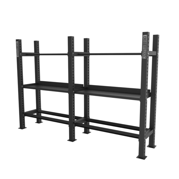 A Crossmaxx® súlytárcsatartó polc egy 120 cm hosszú, masszív tárolóegység, amelyet kifejezetten a (verseny) bumper tárcsák biztonságos és rendszerezett tárolására terveztek. Ideális választás minden olyan professzionális edzőterembe vagy CrossFit boxba, ahol fontos a gyors hozzáférés és az esztétikus megjelenés.